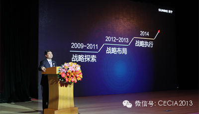 简单来说,从09年开始营销变革以来,我们先后经历了战略探索、战略布局和战略执行的三个阶段。09年到11年是我们战略探索的阶段,我们经历了营销变革,上线苏宁易购,并提出了“科技转型,智慧服务”的新十年发展战略。12年到13年是我们战略布局、转型路径确立的阶段,苏宁电器更名苏宁云商,提出“电商+店商+零售服务商”的发展模式,进而明确了“一体两翼”互联网路线图,定位以互联网零售为主体,以O2O模式和开放平台为两翼的转型路径,苏宁互联网战略得以定型。进入14年,我们定位为战略的执行年,强调以 “三效法则”聚焦O2O门店升级、供应链整合变革和用户体验的快速改善,以专业人才体系的搭建和内部创新激励体系的建设,加速高效执行。
